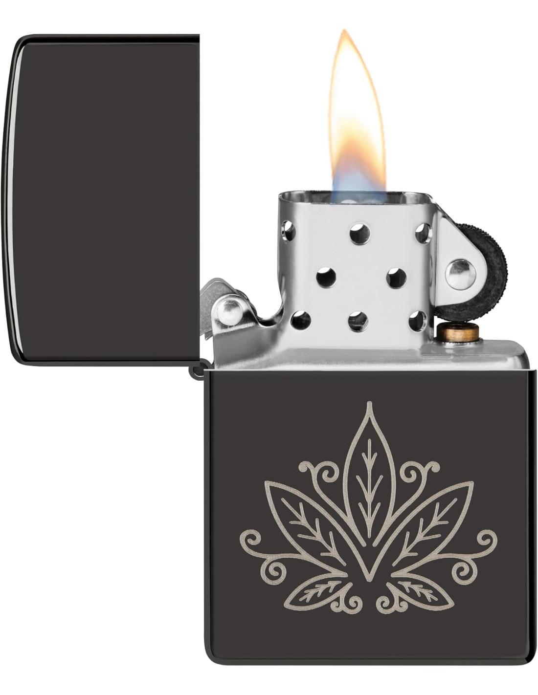 L’encenedor Cannabis Design Black Zippo és un accessori elegant i distintiu, combinant disseny sofisticat amb fiabilitat. Fabricat en metall durador amb estructura de llautó, ofereix un encès estable gràcies a la tecnologia windproof, fins i tot en condicions de vent.