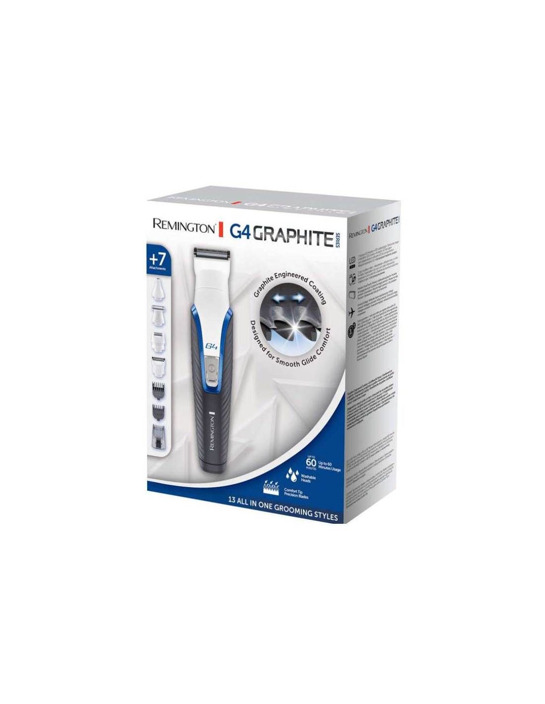 El Remington PG4000 Serie Grafito G4 es un recortador de barba y cortapelos versátil que te permite cuidar tu vello facial con precisión y comodidad. Su diseño ergonómico y sus cuchillas de acero inoxidable recubiertas de grafito lo convierten en una herramienta ideal para lograr un afeitado suave y uniforme.