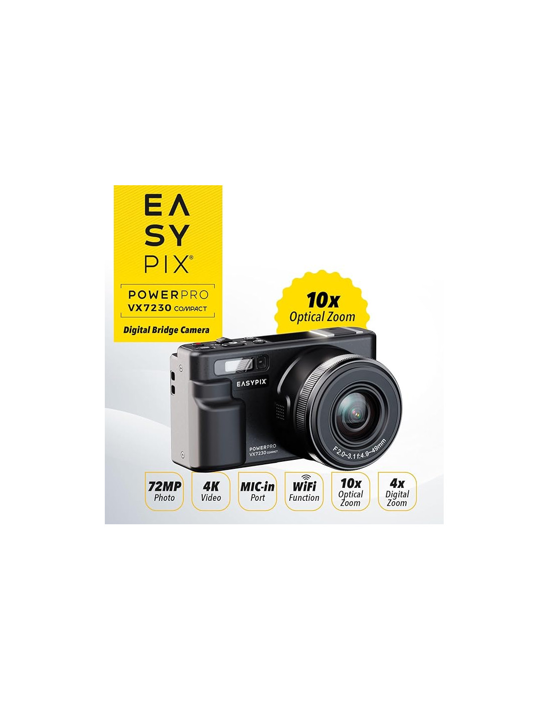 La Easypix PowerPro VX7230 es una cámara digital compacta diseñada para quienes buscan simplicidad y buena calidad de imagen. La versión Easypix PowerPro VX7230 Compact ofrece resolución de 24MP y un diseño ligero que facilita el transporte diario.