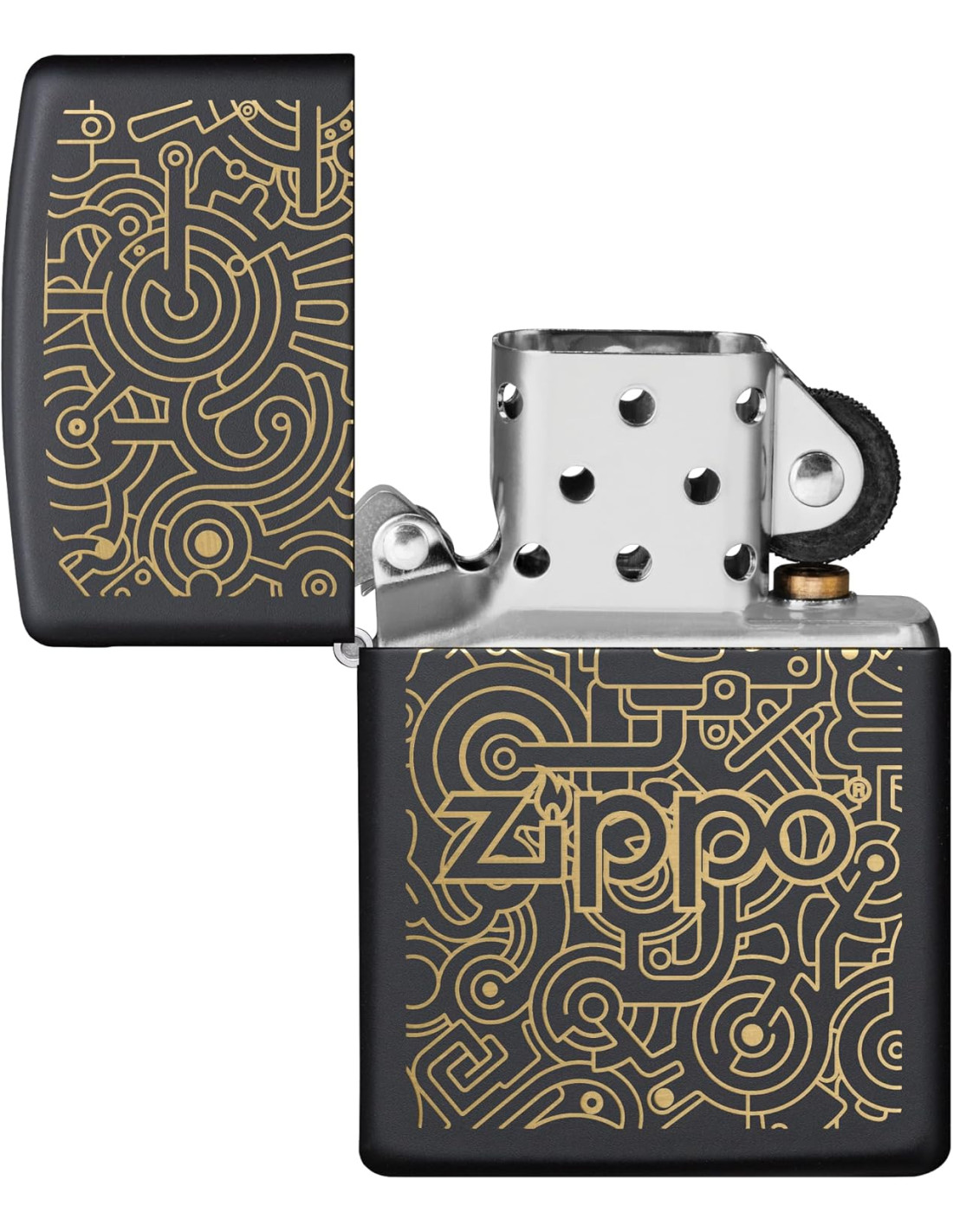 El acabado Matt Black y el diseño de engranajes aportan estilo contemporáneo. Su tamaño compacto facilita el transporte en bolsillo o bolso. El clic clásico de Zippo brinda una experiencia auditiva única, reforzando su estatus de encendedor fiable y símbolo de tradición.