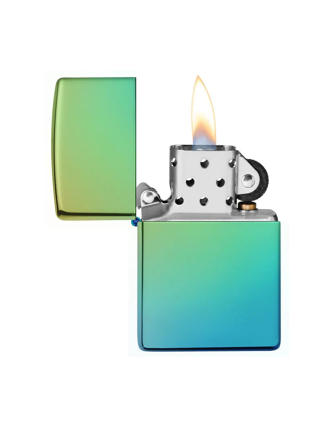 El encendedor fiable Zippo PL49191 High Polish Teal destaca por su acabado brillante y sus colores cambiantes. Su superficie celeste de alto brillo refleja la luz y se transforma en tonos tropicales de amarillo y turquesa caribeño, creando un efecto visual impresionante.