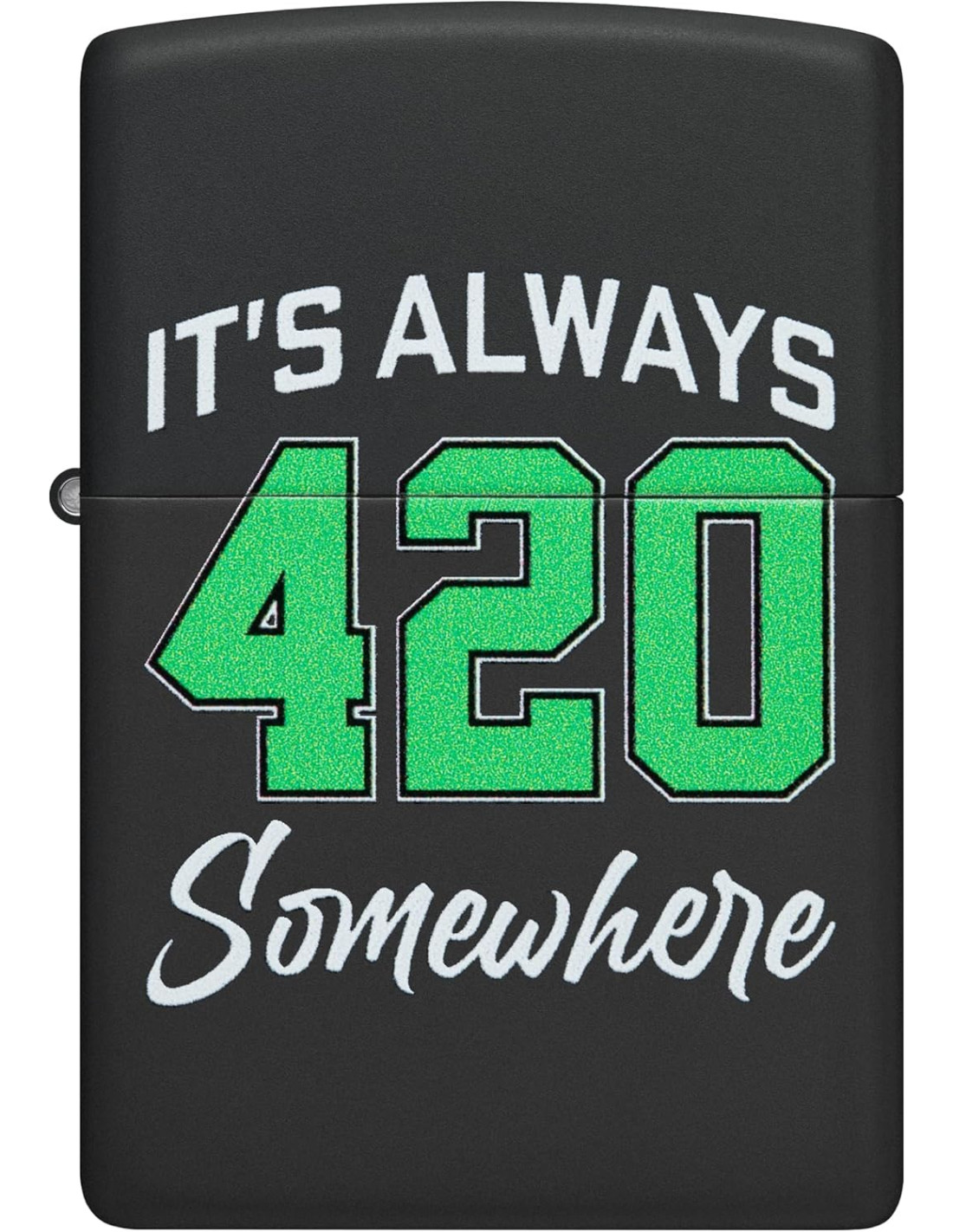 El encendedor Zippo It's Always 420 Somewhere es un encendedor Zippo fiable que combina estilo, durabilidad y funcionalidad. Su acabado Black Matte y el diseño 420 Design lo convierten en un accesorio único, ideal para fans de la cultura pop y coleccionistas.