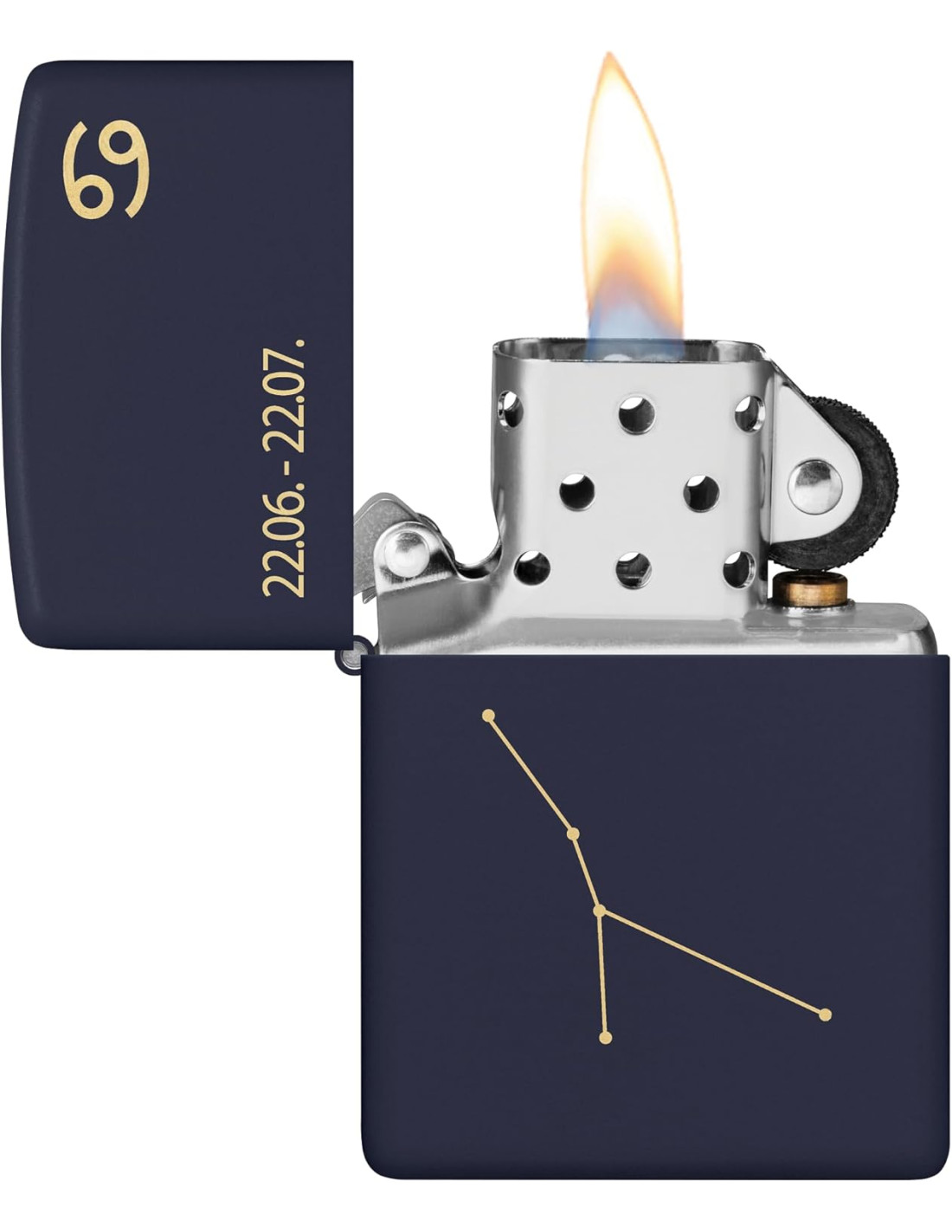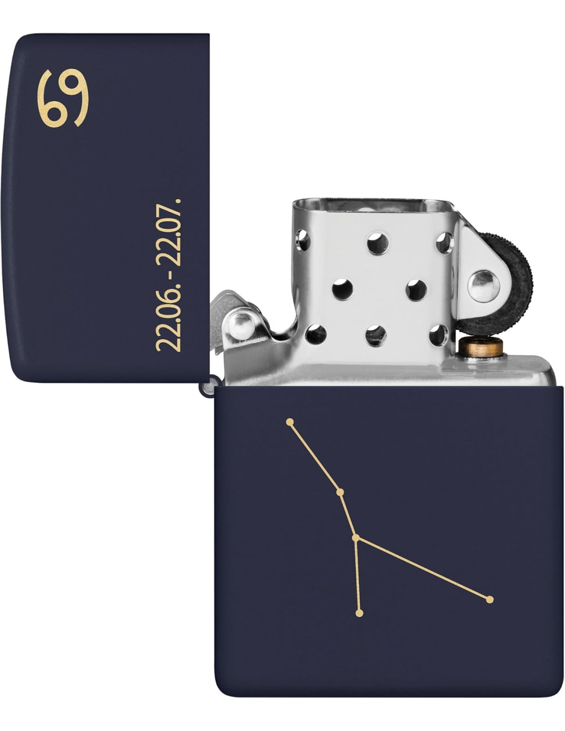 El encendedor Zippo Zodiac Cancer Matt Navy Blue es un encendedor Zippo fiable que combina diseño clásico, durabilidad y funcionalidad. Su acabado Matt Navy Blue y el diseño Zodiac Cancer lo hacen elegante y llamativo. Es ideal para coleccionistas y uso diario.