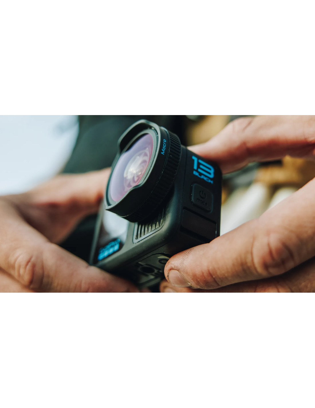 Gracias al GoPro Macro Lens Mod (H13), cada detalle cobra vida en tus grabaciones y fotografías. Este accesorio mejora la profundidad y nitidez de los objetos cercanos, aportando un estilo profesional a tu contenido.