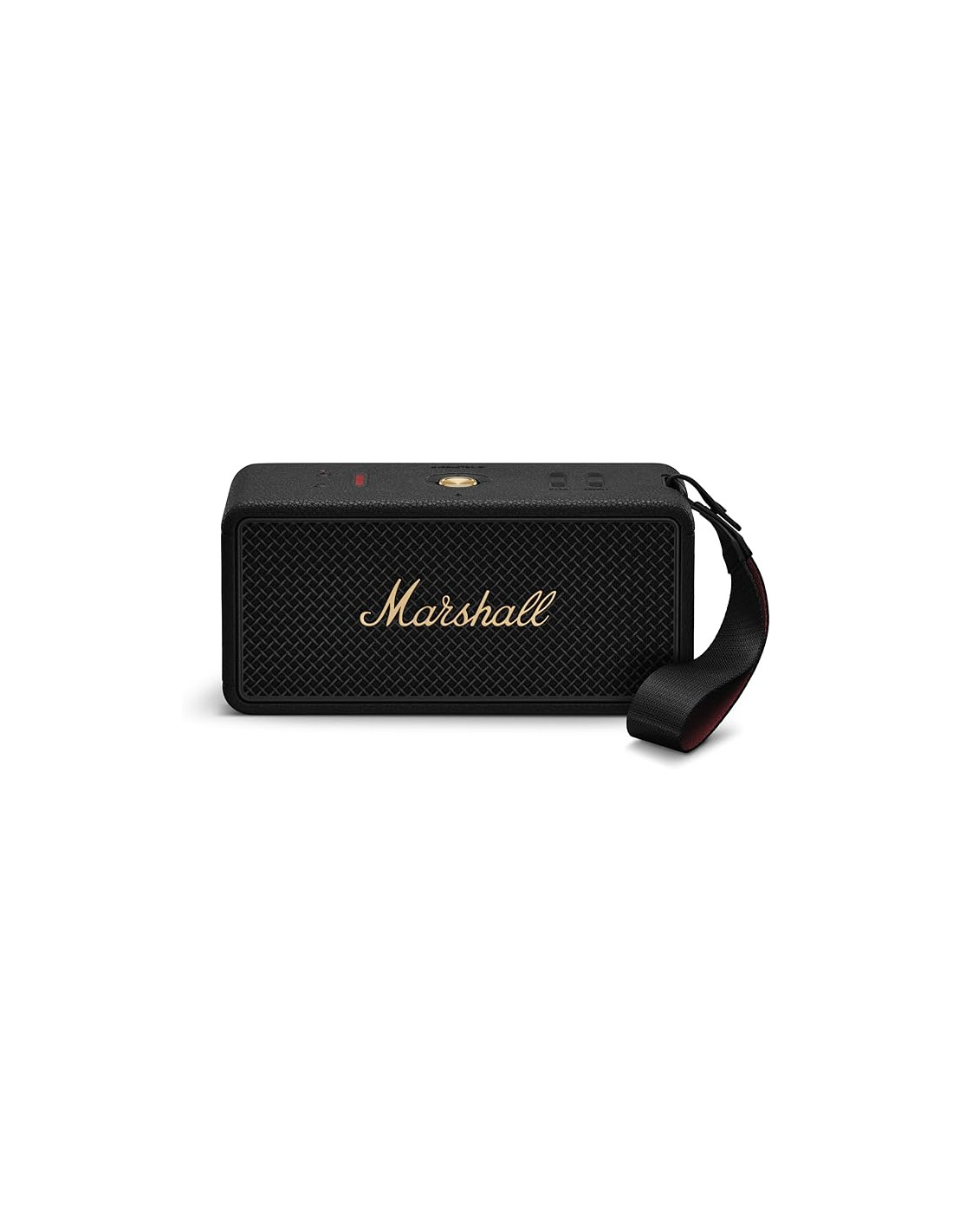 El Marshall Middleton II Black & Brass es un altavoz Marshall portátil diseñado para quienes buscan portabilidad, potencia y estilo sofisticado. Este altavoz Bluetooth Marshall combina la calidad de sonido profesional de Marshall con un diseño elegante Black & Brass. Ofrece sonido multidireccional en 360°, con graves profundos, medios equilibrados y agudos claros, ideal para interiores, exteriores, reuniones o escapadas al aire libre.