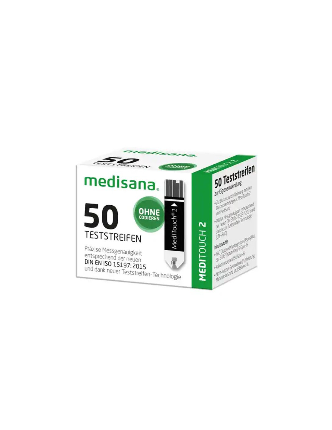 Cada paquete contiene 50 tiras reactivas listas para su uso. Se recomienda combinarlas con el dispositivo de punción MediTouch 2 y lancetas compatibles. El set permite realizar mediciones frecuentes y precisas, asegurando un control completo de la glucosa.