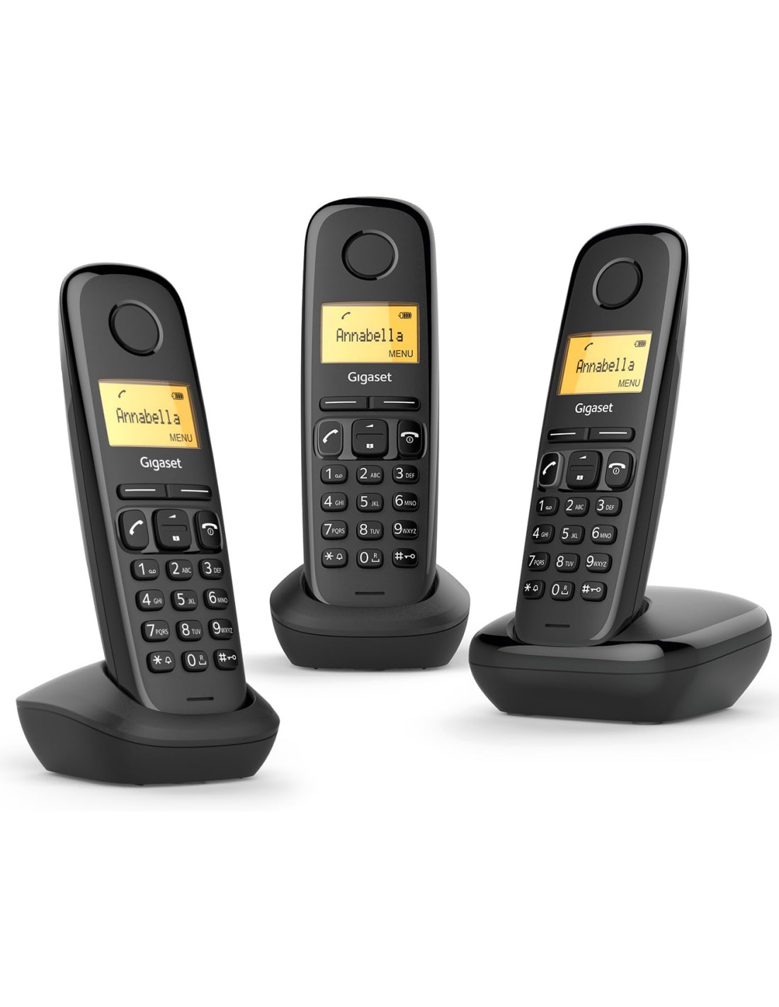 El Gigaset A170 Trio Negro es un teléfono inalámbrico fiable pensado para el uso diario en casa o en la oficina. Este pack incluye tres auriculares, lo que permite instalar teléfonos en diferentes habitaciones. Así siempre tendrás uno cerca para responder llamadas.