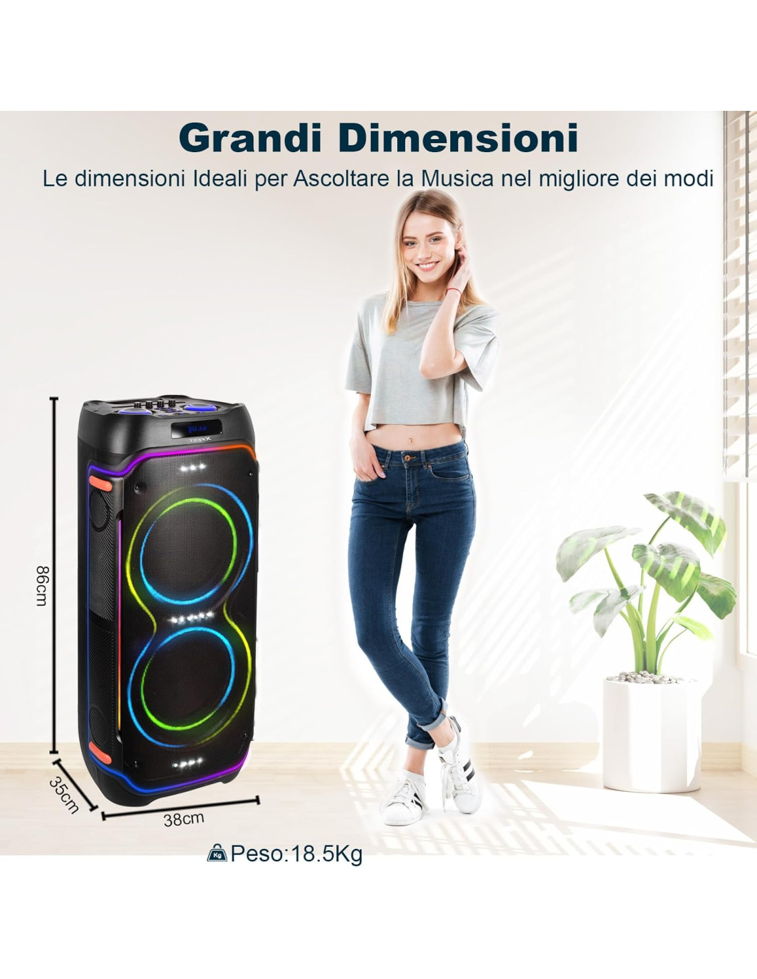 En resumen, este altavoz portátil combina potencia, calidad y versatilidad. Su transporte fácil, conectividad avanzada y controles intuitivos aseguran una experiencia cómoda y satisfactoria. Es el compañero ideal para disfrutar de música con intensidad, claridad y estilo en cualquier ocasión.