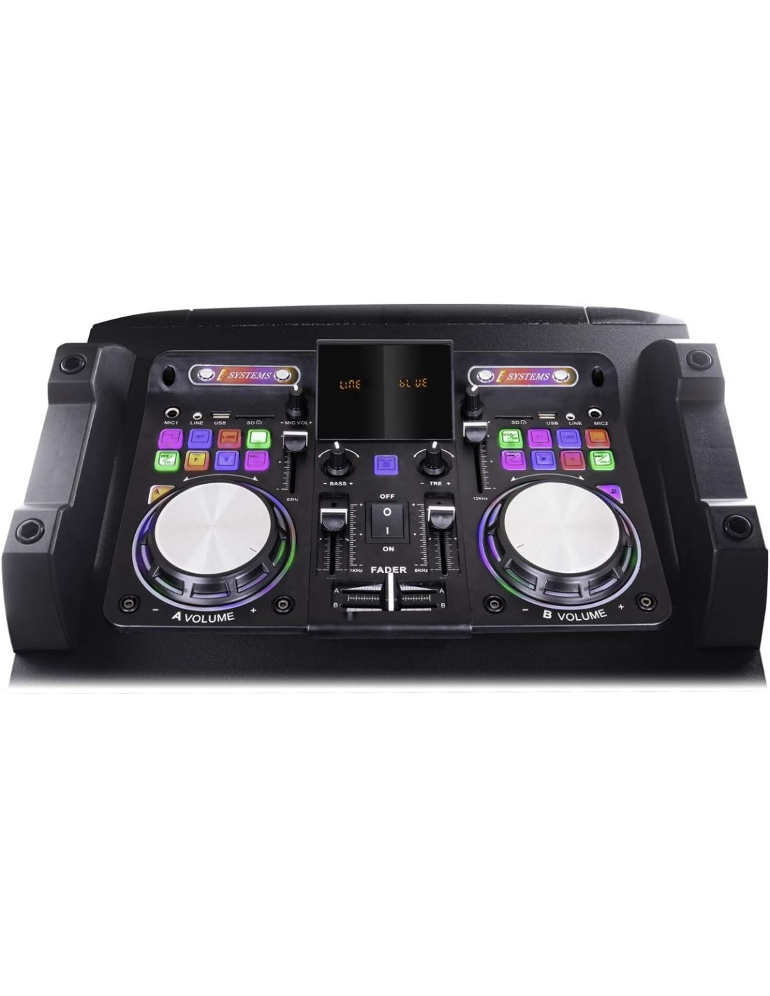 Cuenta con conectividad Bluetooth y entradas auxiliares/micrófono, ofreciendo múltiples opciones para DJs, presentaciones y eventos en vivo. Su diseño jumbo y portátil permite transportarlo con facilidad a cualquier escenario o espacio.
