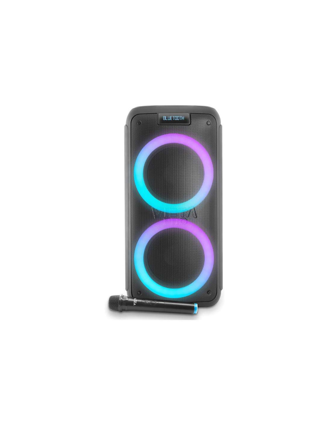 El Vieta Pro High Watts Party 10 Black es el compañero ideal para tus fiestas y eventos. Este altavoz portátil Bluetooth combina un sonido potente con la versatilidad de la conectividad inalámbrica. Con una impresionante potencia de 150W, está diseñado para ofrecer un audio claro y graves profundos que llenan cualquier espacio. Sus dos woofers de 6,5 pulgadas y un tweeter de 2 pulgadas garantizan una experiencia auditiva rica y equilibrada.
