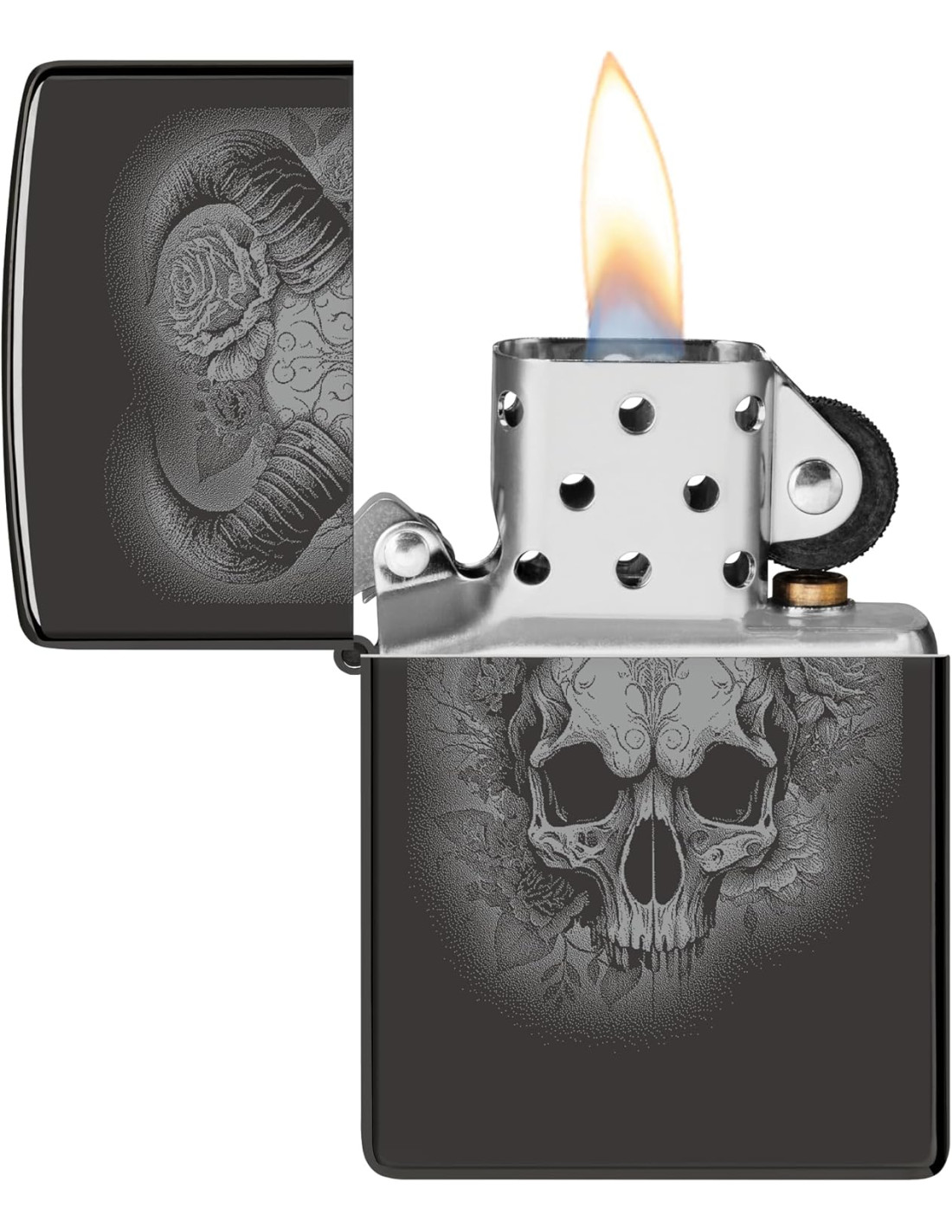 El encendedor Zippo Flower Skull with Horns High Polish Black es un encendedor Zippo original con diseño atrevido y coleccionable. Presenta un motivo de calavera con flores y cuernos, que lo hace llamativo y único. Es ideal para coleccionistas y amantes del estilo rock o gótico.